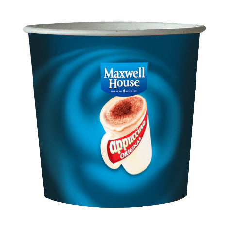 375 cups (15 x 25 per box) of Maxwell House Instant Cappuccino 76mm In-Cup Drinks.