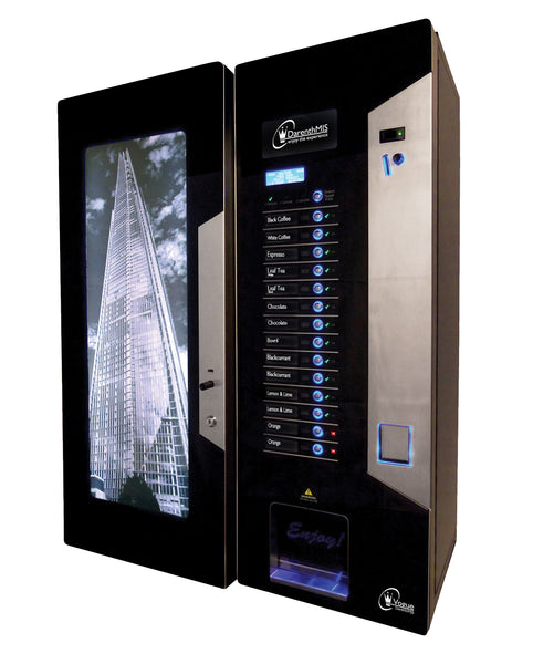Coin Operated (Electronic, accepts all coins). Ideal for a medium to large business or where there is a high volume of drinks required. Press for selection, sugar and water and the machine dispenses the drink automatically. The door slides up, is illuminated and the user removes their drink. Price includes standard Coin operation (standard electronic, accepts all coins). Delivery and installation is also included (>Learn more).